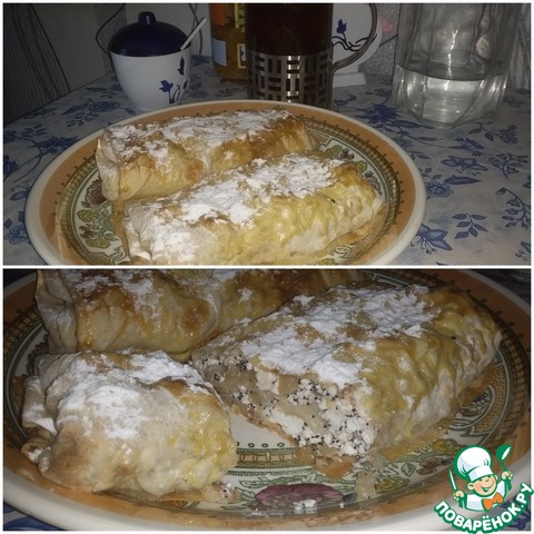 Рецепт «Яблочно-творожный штрудель из лаваша»: