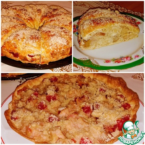 [+4]И все мне не удалось запихнуть в одну форму, так что бонусом - открытый пирог с яблоками и вишней со штройзелем...