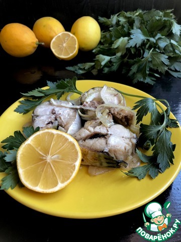 Рыбу солим, перчим. Можно добавить любые специи. В посуду, в какой будем запекать, сначала кладем лук, потом кусочки рыбы. Поливаем соком лимона. Я когда готовлю для себя, то добавляю еще кусочки лимона. Сверху можно добавить еще лука.