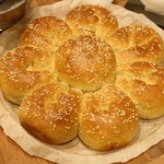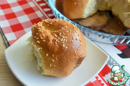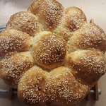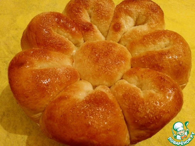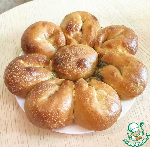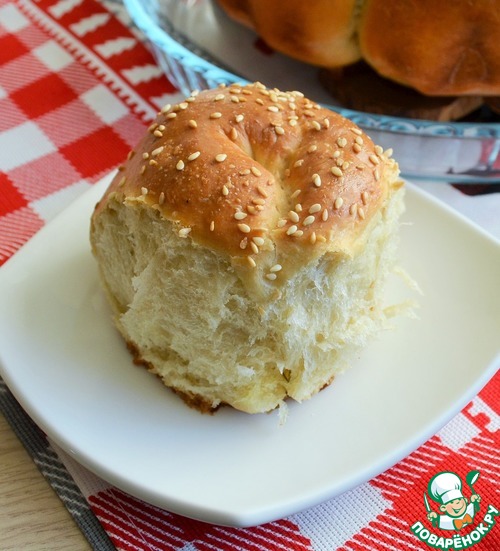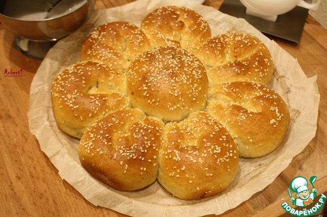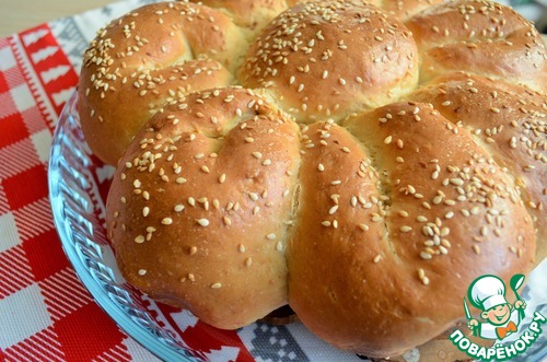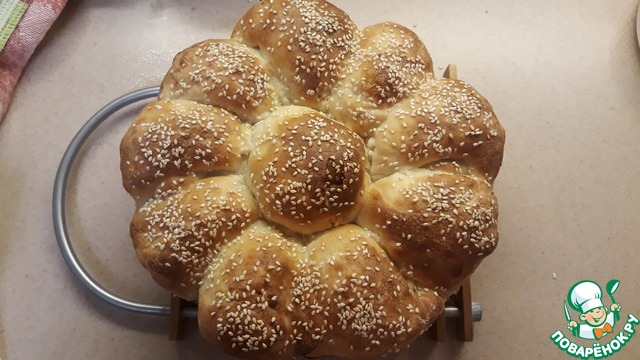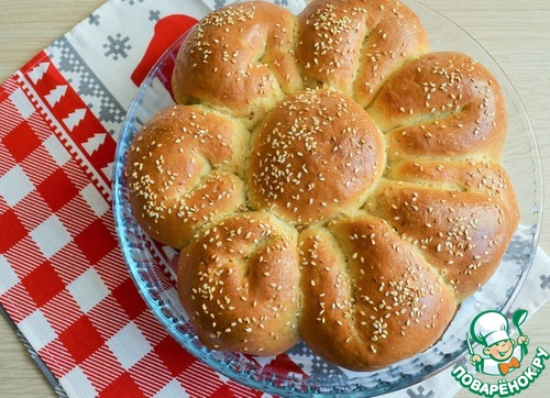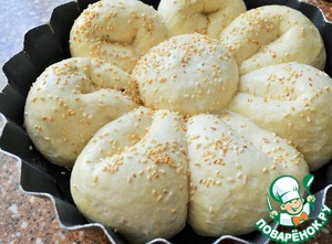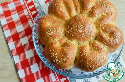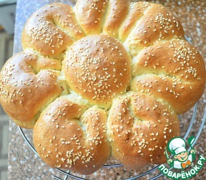 Расстоявшийся "цветок" смазать сливками, присыпать кунжутом.