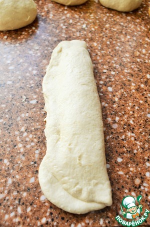 Начинаем формовать. Колобок раскатать в прямоугольник.