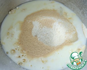 Накрыть пленкой, оставить для выбраживания в теплом месте на 1 час. -