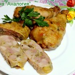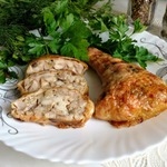 Если вы любите фаршированную курицу, но не любите её разделывать, есть упрощенный вариант - это фаршированные окорочка. С ними нет никакой мороки, а по вкусу - всё то же самое. Фаршированные окорочка готовлю всегда по-разному, получается очень вкусно. Сегодня - это просто целые кусочки мяса с грибами. Блюдо отличается нежным вкусом, привлекательным аппетитным внешним видом, к тому же, это замечательная альтернатива покупным колбасам и ветчинам, ведь, по сути, фаршированные куриные окорочка - это домашняя колбаса.