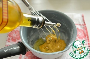 Влейте растительное масло. Лучше брать масло нерафинированное, с ярко выраженным вкусом - горчичное или подсолнечное. Сюда же добавьте соль, сахар и лимонный сок. Для более насыщенного цвета рекомендую добавить щепотку куркумы, но это не обязательно.