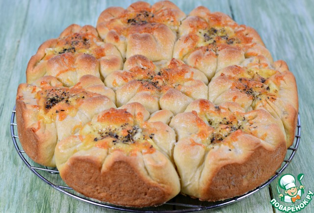 Смазать пирог молоком (столовая ложка) и присыпать тертым сыром. (по желанию) Можно добавить к сыру прованские (или ваши любимые) травы.