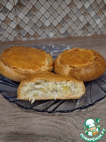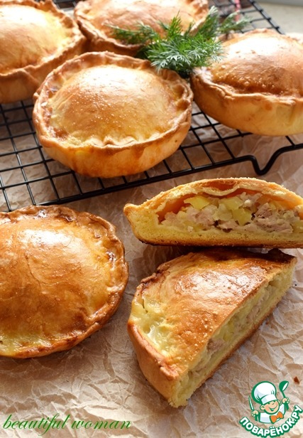 Предлагаю приготовить порционные, очень сытные татарские пироги. Начинка: картофель, лук и курица. А тесто за счёт масла и сметаны получается нежное, сливочное и песочное. Очень вкусные пироги!