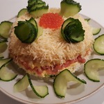 Очень вкусный, сочный салатик! Станет украшением праздничного стола и никого не оставит равнодушным! Салатик понравится всем! Советую приготовить!