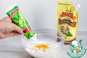 Также добавьте 1 ст. л. хрена и цедру апельсина.