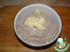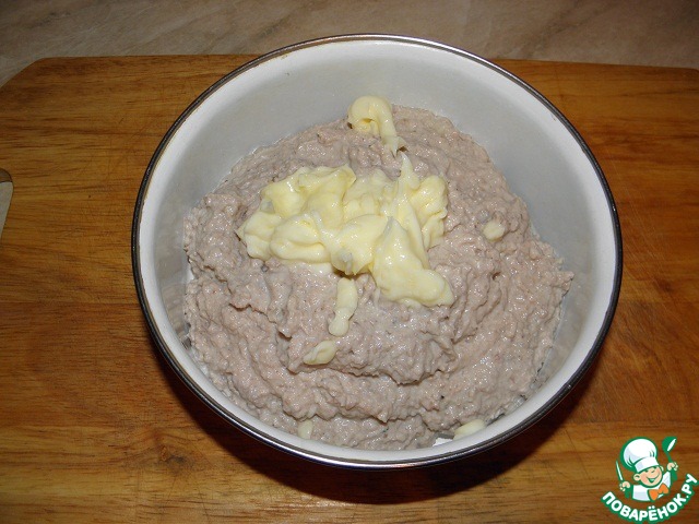 Вмешать мягкое сливочное масло (комнатная температура) ложкой, посолить, поперчить