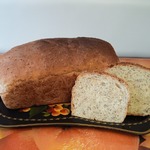По окончании программы хлеб достать из хлебопечки. Он замечательно выходился и прекрасно запёкся. Остудить хлеб на решетке. Вот такой хлеб в разрезе красивый, кроме того он необыкновенно ароматный и полезный. Приятного аппетита!