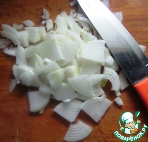 Нарезать лук и отправить его обжариваться на небольшом огне на растительном масле в глубокой сковороде.