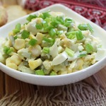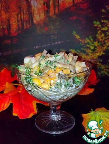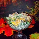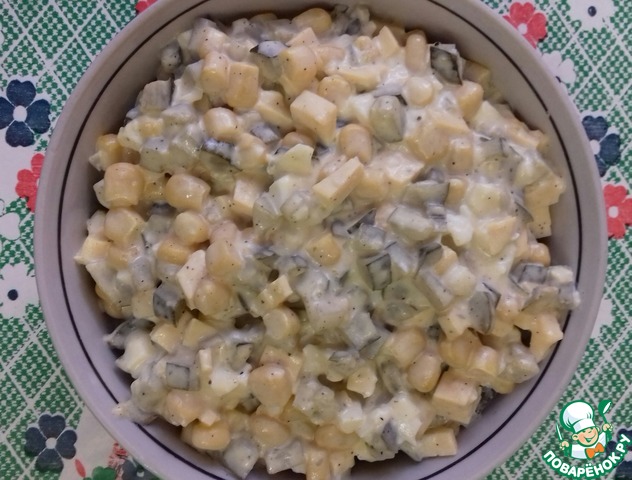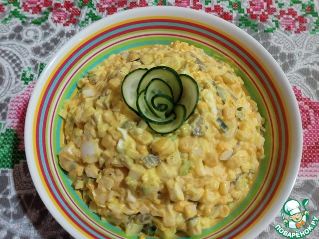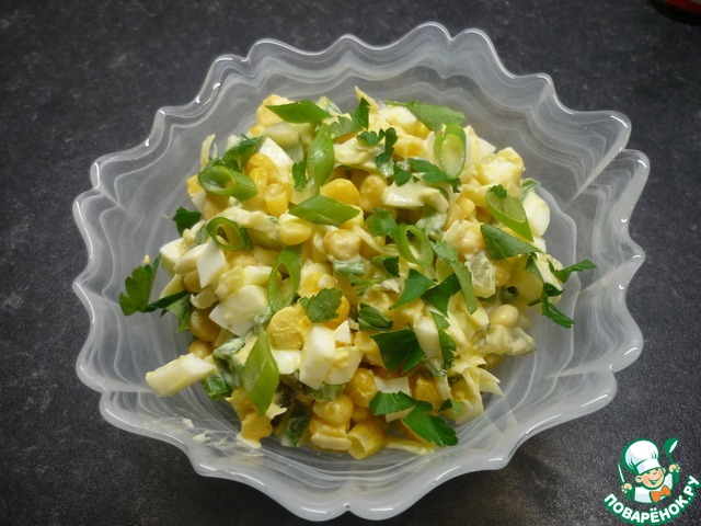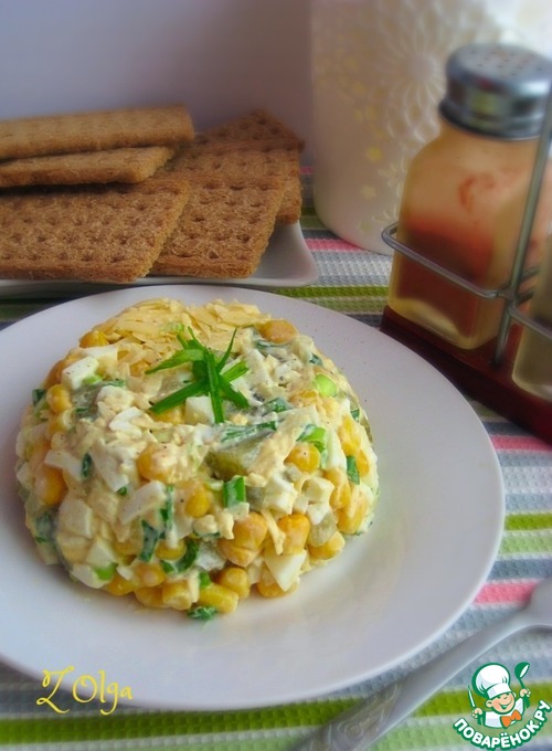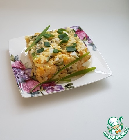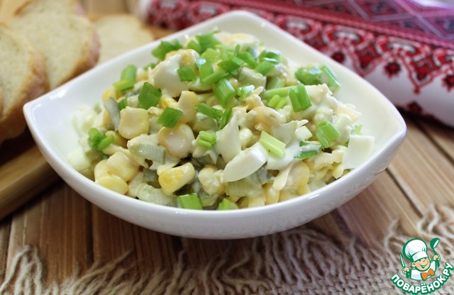 Добавим ярких красок на стол в хмурые, холодные дни! Солнечный, яркий салат с кукурузой, сыром и зеленым луком!
