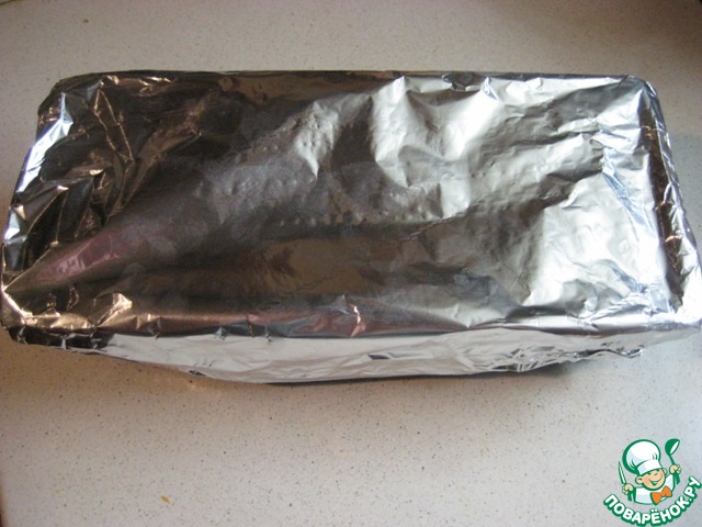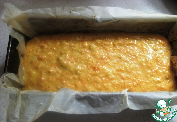 Подготовить форму для выпечки (застелить пергаментом и чуть смазать растительным маслом, размер формы шир.11 см, выс. 7 см, дл. 25 см). Выложить тесто, разровнять верх.