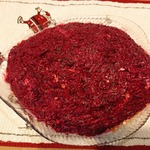 Как оказалось, гранат ооочень дружит с остальными ингредиентами, и сочетание соленой рыбы и кисло-сладком зерен граната дают интересное сочетание. Даже косточки в зернах не портят впечатление, если не удалось найти гранат без косточек. Тут главное не переборщить, и не насыпать сплошным слоем, а чтобы свекла просвечивала.