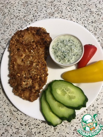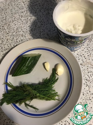 Решила, что для такого блюда идеально подойдет соус из сметаны, огурца и зелени.