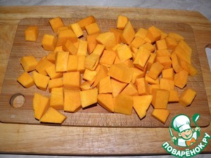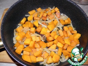 Добавляем к луку тыкву, обжариваем 6 минут.