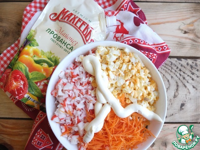 Добавляем майонез "МахеевЪ", перемешиваем.