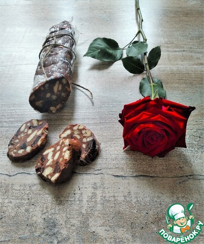 Сладкая колбаска - лакомство родом из детства. Предлагаю вам вариант его приготовления из натурального шоколада. Причем, вы можете выбрать любую плитку по своему вкусу. Готовится колбаска быстро и достаточно просто. Заранее приготовленная она отлично хранится в морозильной камере. Это очень актуально в насыщенные предпраздничными хлопотами дни. В нужный момент вы сможете украсить десертом Новогодний стол и порадовать своих близких или неожиданно нагрянувших гостей.