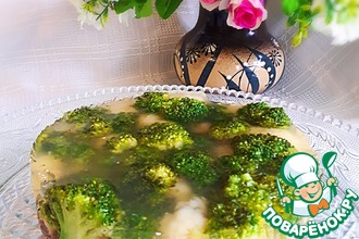 Рецепт "Заливное из сeмги с маслинами и креветками":