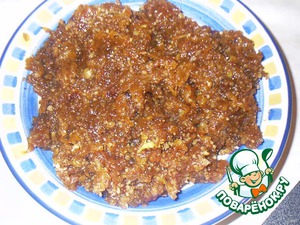 Пока мы делали тесто, яблоки уже сварились. Теперь добавим в яблоки перемолотые орехи и корицу. И поставим остывать.