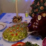 На большой тарелке нарисуйте очертания будущей елки майонезом.