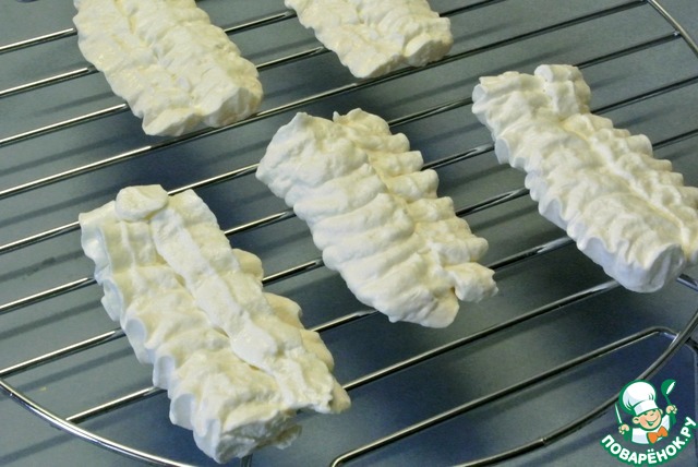 Выпекать в духовке при 90 С с приоткрытой дверцей 1 час. Вынуть, дать остыть.