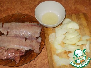 [+5]Рыбка была у меня весом 400г (очищенная, с небольшой икрой - 275г). Количество соли, сахара и уксуса,(бальзамический), - по рецепту. Лука взяла - 200г (обожаю маринованый лучок