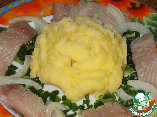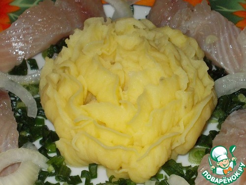 Я попыталась из пюре сделать цветочек... Не знаю на сколько удачно у меня это вышло, но я старалась предать картофелю праздничный вид! Наташенька, это для тебя от всего сердца!