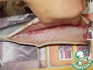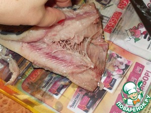 Тоже самое делаем со второй стороны. Спинной плавник удаляем аккуратно вместе с кожицей.