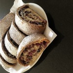 Этим временем займёмся начинкой ;изюм чистый и сухой +вишня+орехи (Орехи порубить ножом) сахарная пудра.