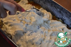 Выкладываем творожную начинку. Разровнять лопаткой.
