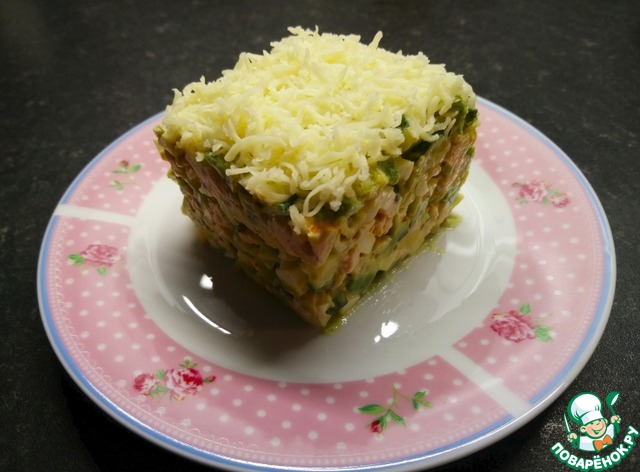 ... и выкладываем его верхним слоем. Снимаем форму или кольцо.