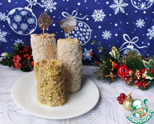 Новый год у меня ассоциируется с чем-то волшебным и необычным. Поэтому решила приготовить песочное пирожное-трубочку, наполнить её нежным кремом с белым шоколадом и вишней. И оформить в виде свечи. И вот что у меня получилось.
