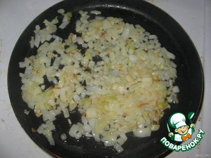 Пока овощи варятся, нарезанный мелко лук, обжариваем на растительном масле (лучше на оливковом).