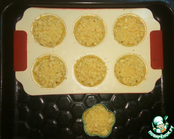 Формы для выпечки смазать маслом. Выложить круги из теста в формочки, хорошо прижимая дно и бортики из теста.