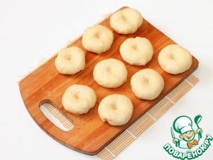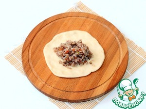 11. Раскатываем 8 лепешек в круг. На каждую кладем по 2 ст. л. начинки.