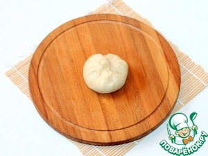 12. Собираем тесто и закрываем начинку, переворачиваем и немного припыляем перевернутую сторону. Формируем пирожок.