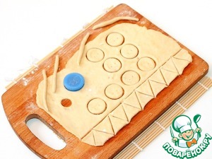14. Оставшееся тесто (9-я часть) раскатываем в пласт толщиной ~ 3 мм, вырезаем ушки, пятачки.