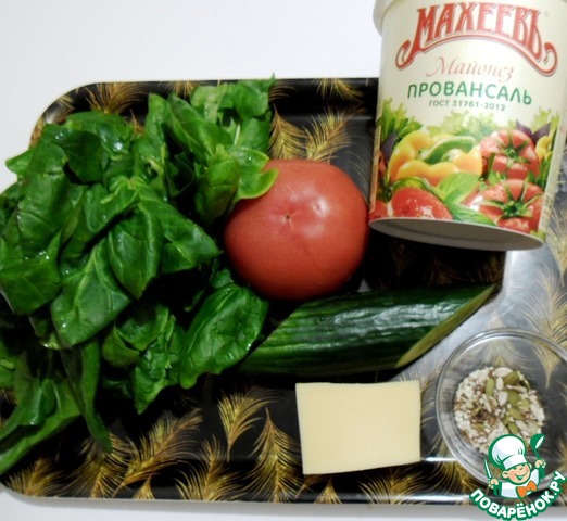 Без лука и чеснока. Легкий, вкусный и освежающий салат. Когда на праздничном столе изобилие мясных блюд, хочется "облегчить" их чем-либо овощным. А уж салат со шпинатом ещё и полезен для организма. Этот салат можно использовать и на гарнир, и на закуску. Главное - выбрать для салата молодой шпинат, т. к. в салат он идет без термообработки.