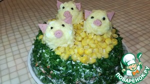 Украшаем хрюшками наш салат.