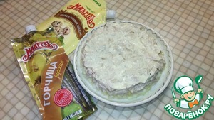 Сверху горчицы смазать майонезом. Я использую майонез "'С перепелиным яйцом" от ТМ МахеевЪ.