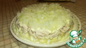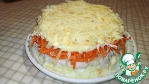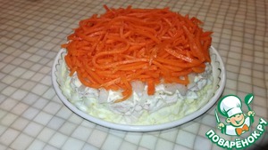 Следующий слой - морковка по-корейски. Сверху промазать майонезом.