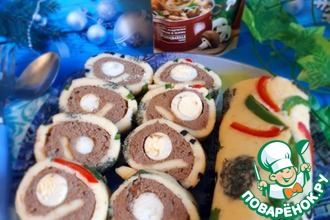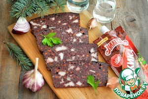 При подаче нарежьте на ломтики. На срезе получается потрясающий рисунок из кусочков шпика и моркови. Любители кровяной колбасы обязательно оценят такую закуску!