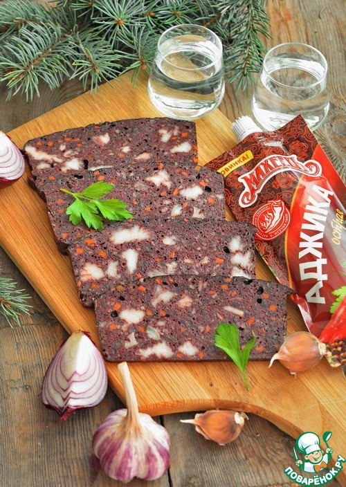 Если вы любитель кровяной колбасы, то этот рецепт вам понравится и, надеюсь, пригодится. Красным зельцем называют мясной хлеб из крови с различными добавками. Много писать нет смысла - кто любит, тот поймёт. Особую пикантность и аромат этому зельцу придает аджика "Махеев".