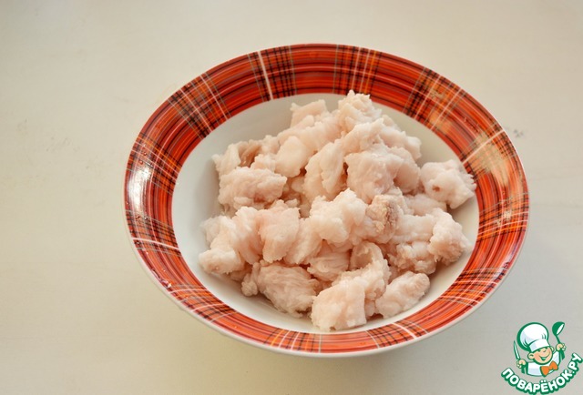 Свиной шпик (или щековину, жирную грудинку) нарежьте на кубики размером 0,7-0,8 мм, залейте кипятком на 5 минут, затем слейте кипяток и залейте холодной водой, чтобы остудить. Слейте воду и уберите в холодильник на 1-2 часа