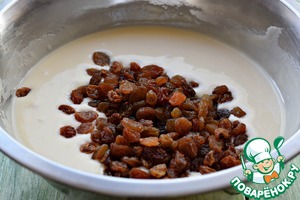 Вмешать в тесто промытый и обсушенный мелкий изюм.