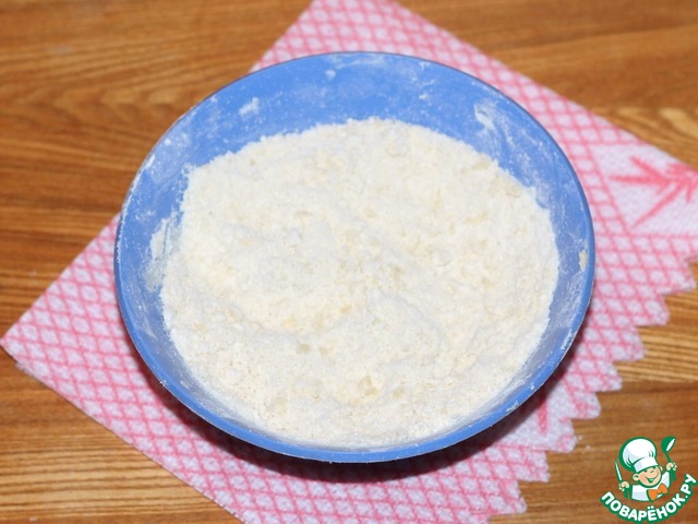 3. Должна получиться мелкая мучная крошка. Смотрите фото.