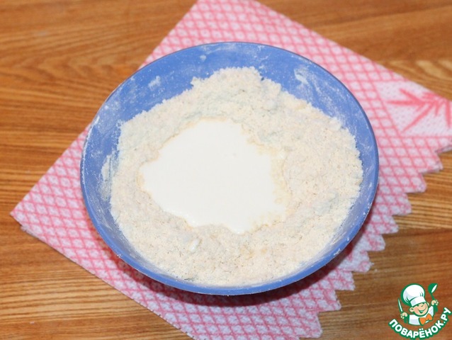 4. Добавляем йогурт, перетираем, получаем крупную крошку.
