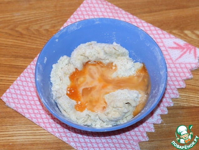 Т. е., вы берете желток, взбиваете вилкой и взвешиваете 20 грамм. Если вы хотите, чтобы тесто не было сухим, жестким, надо обязательно взвешивать продукты. Лишняя мука, превратит печенье в твердое.