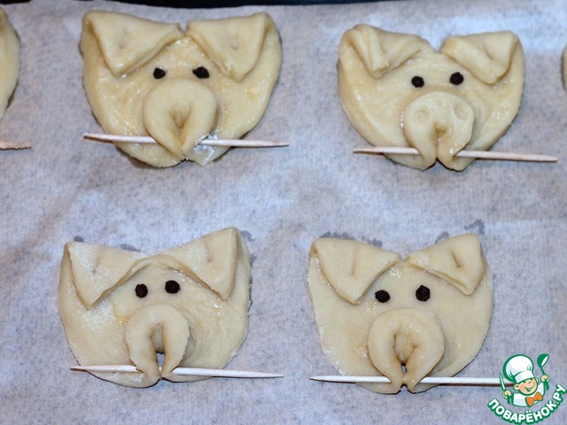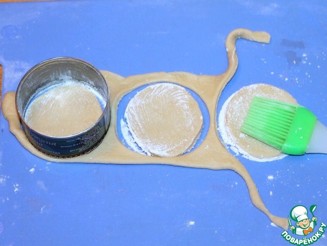 Пока вырезаем и формируем поросят из этих кружков (2-3 шт), остальное тесто лежит в холодильнике.